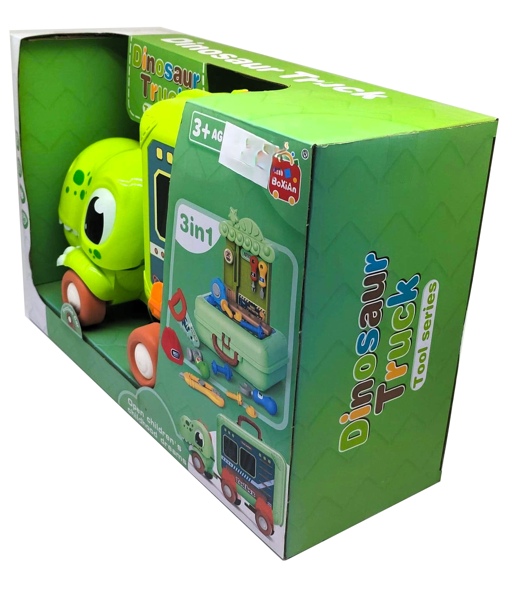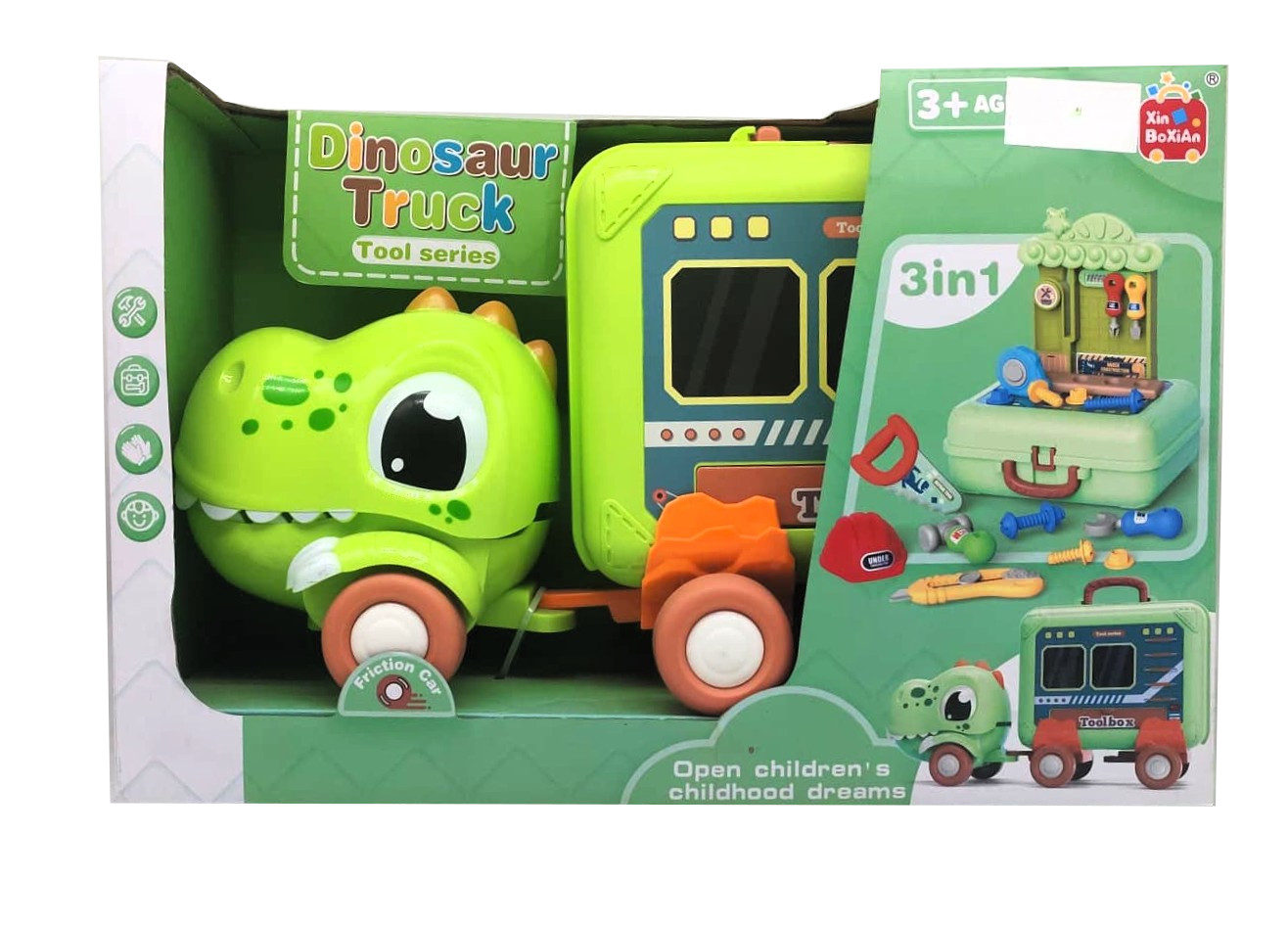 Open children’s childhood dreams” and build on the go with the 3-in-1 Dinosaur Tool Truck Playset! This clever toy combines a fun vehicle, a portable storage case, and a complete pretend-play construction workbench into one exciting package.