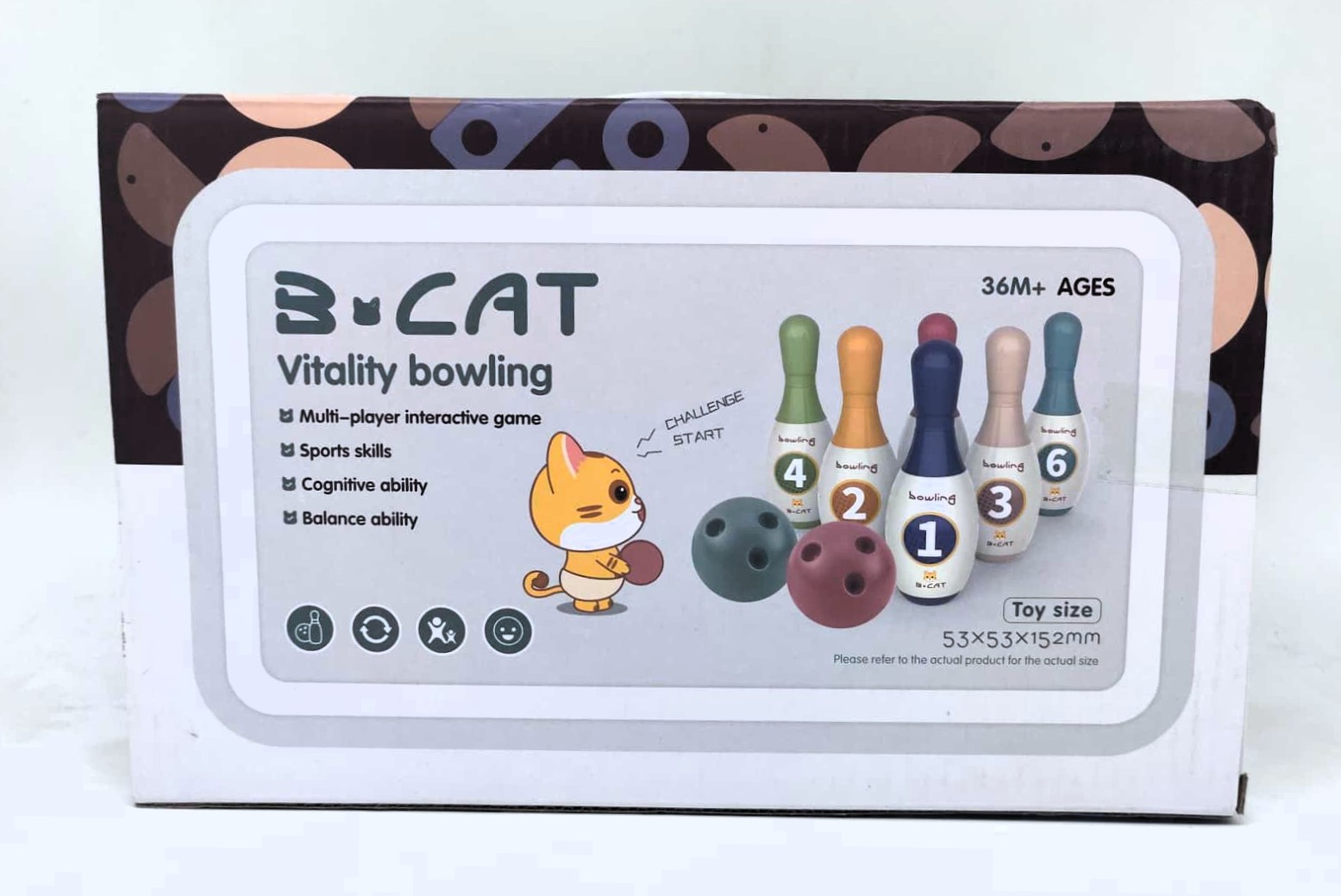 Score a strike with the B.CAT Vitality Kids Bowling Set at al3aby.com! This 8-piece interactive toy features 6 numbered, colorful pins and 2 bowling balls. Perfect for developing balance, sports skills, and cognitive abilities in toddlers 3+. Shop this active indoor/outdoor game today!