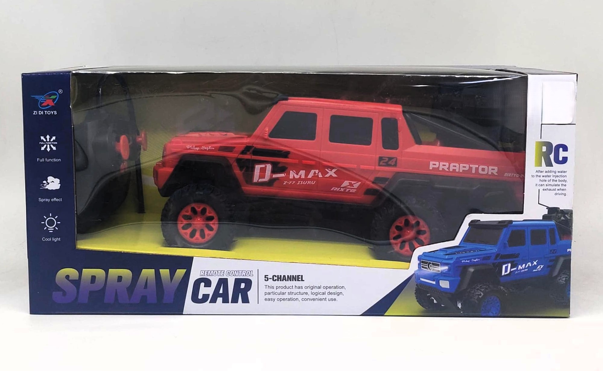 Get ready to conquer the terrain and leave the competition in the dust with the “D-MAX Praptor” R/C Off-Road Spray Car! This rugged, highly detailed remote control truck doesn’t just drive—it puts on a show with its unique, simulated exhaust feature.