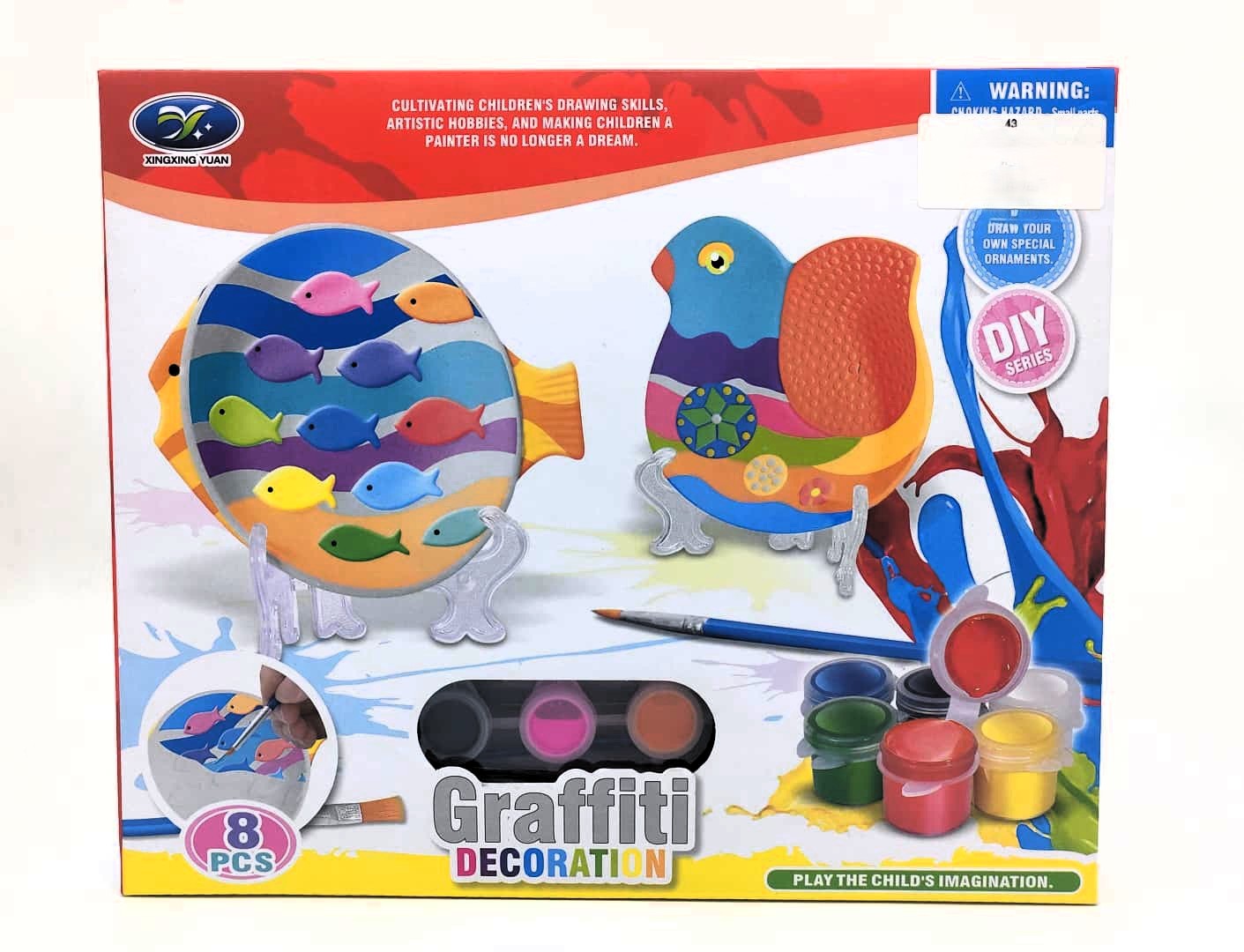 Nurture your child’s artistic potential with the Graffiti Decoration DIY Series! This engaging “Paint Your Own” kit allows children to step into the shoes of a real artist, transforming plain figures into colorful masterpieces. The set includes two charming 3D animal ornaments—a tropical fish and a decorative bird—ready to be customized.