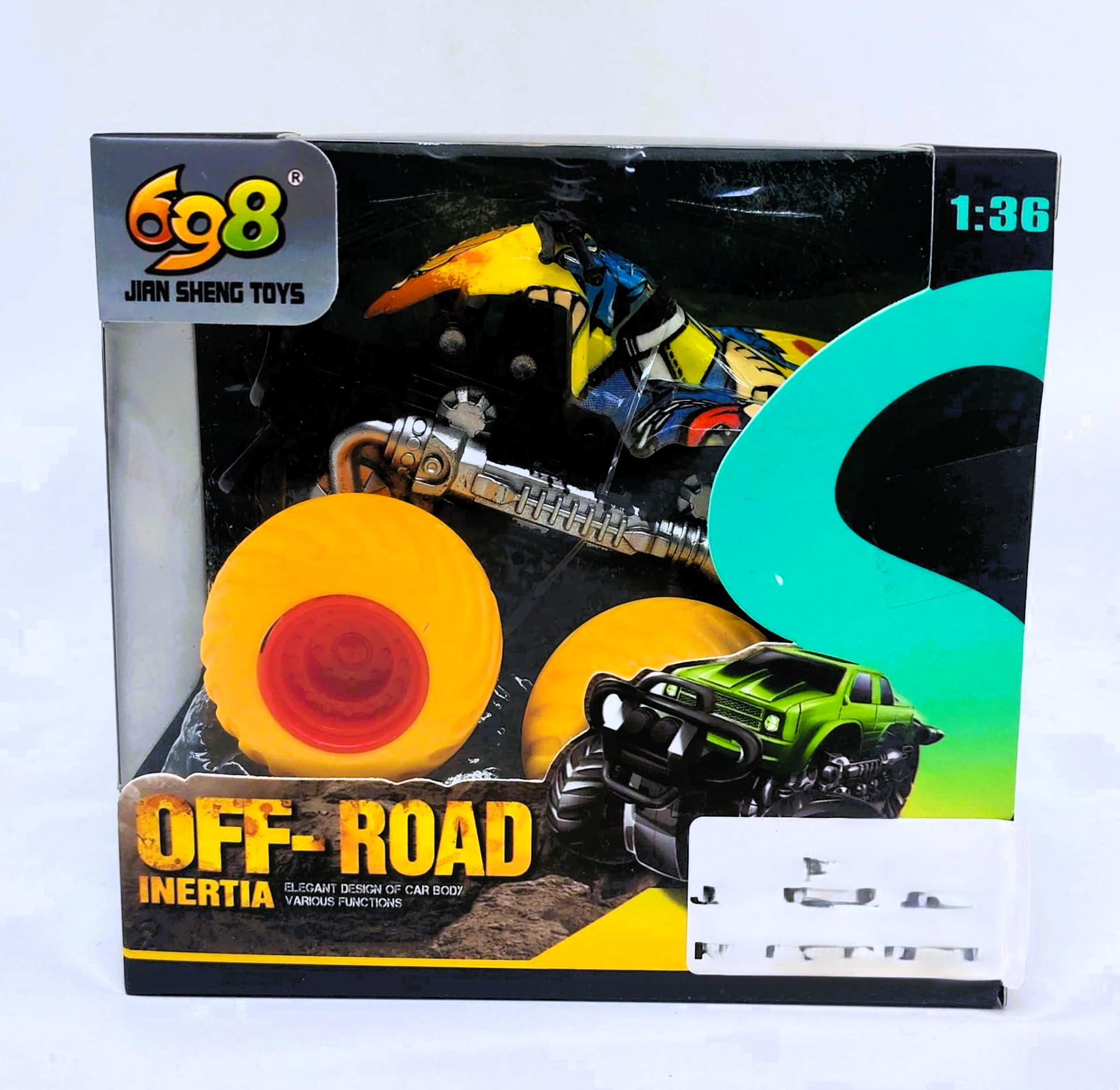 Perform epic 360-degree spins and wheelies with the Jian Sheng Off-Road Inertia ATV at al3aby.com! This 1:36 scale friction-powered monster truck features massive orange tires, active suspension, and push-and-go stunt action. No batteries required. Shop extreme toy vehicles today!