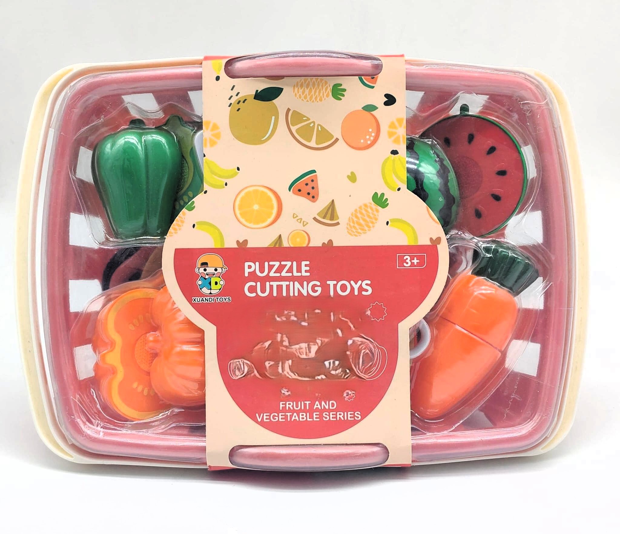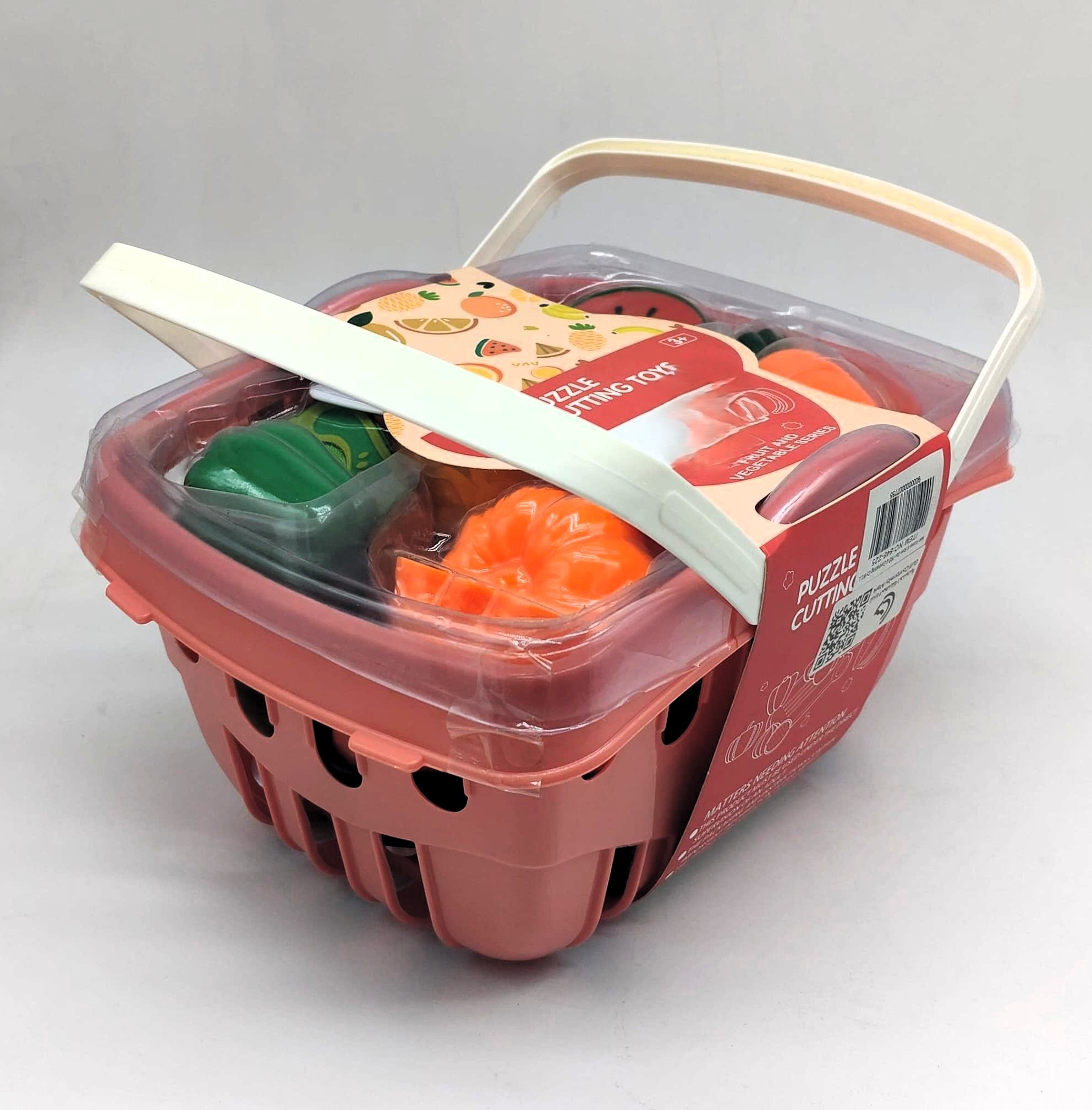 Kids Puzzle Cutting Fruit and Vegetable Play Set with Shopping Basket