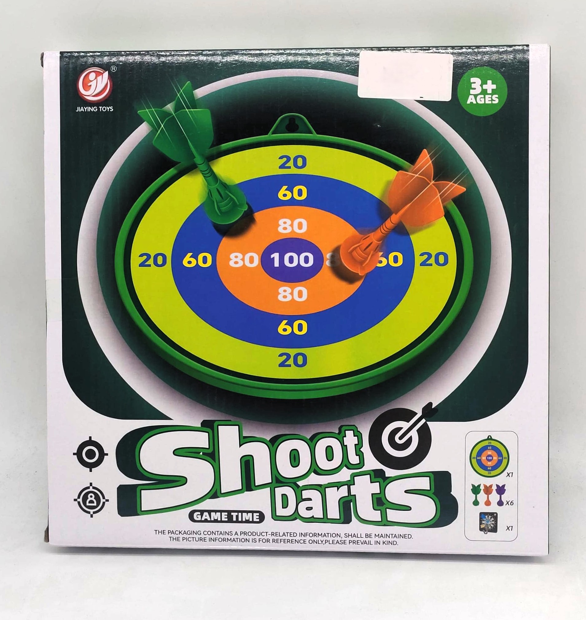 Safe Suction Cup Darts: Leave the sharp steel tips behind! This set comes with 6 brightly colored, soft suction-cup darts that stick easily to the smooth plastic target board without causing any damage to your walls or risking injury.