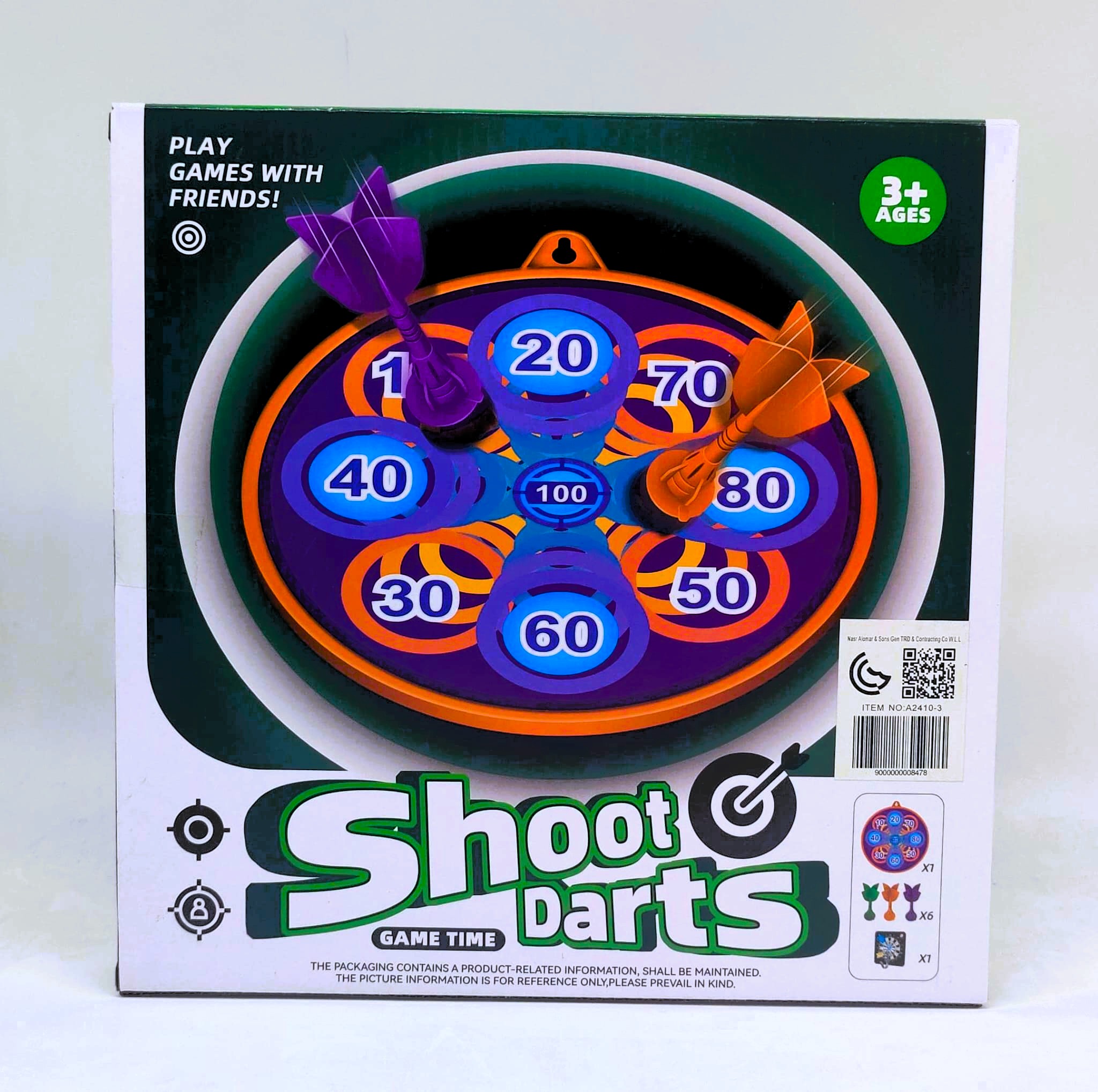 Step right up and test your aim with the “Shoot Darts” Game Set! This kid-safe dartboard provides all the competitive fun of a classic game of darts without any of the sharp points, making it the perfect addition to family game night or playdates with friends.