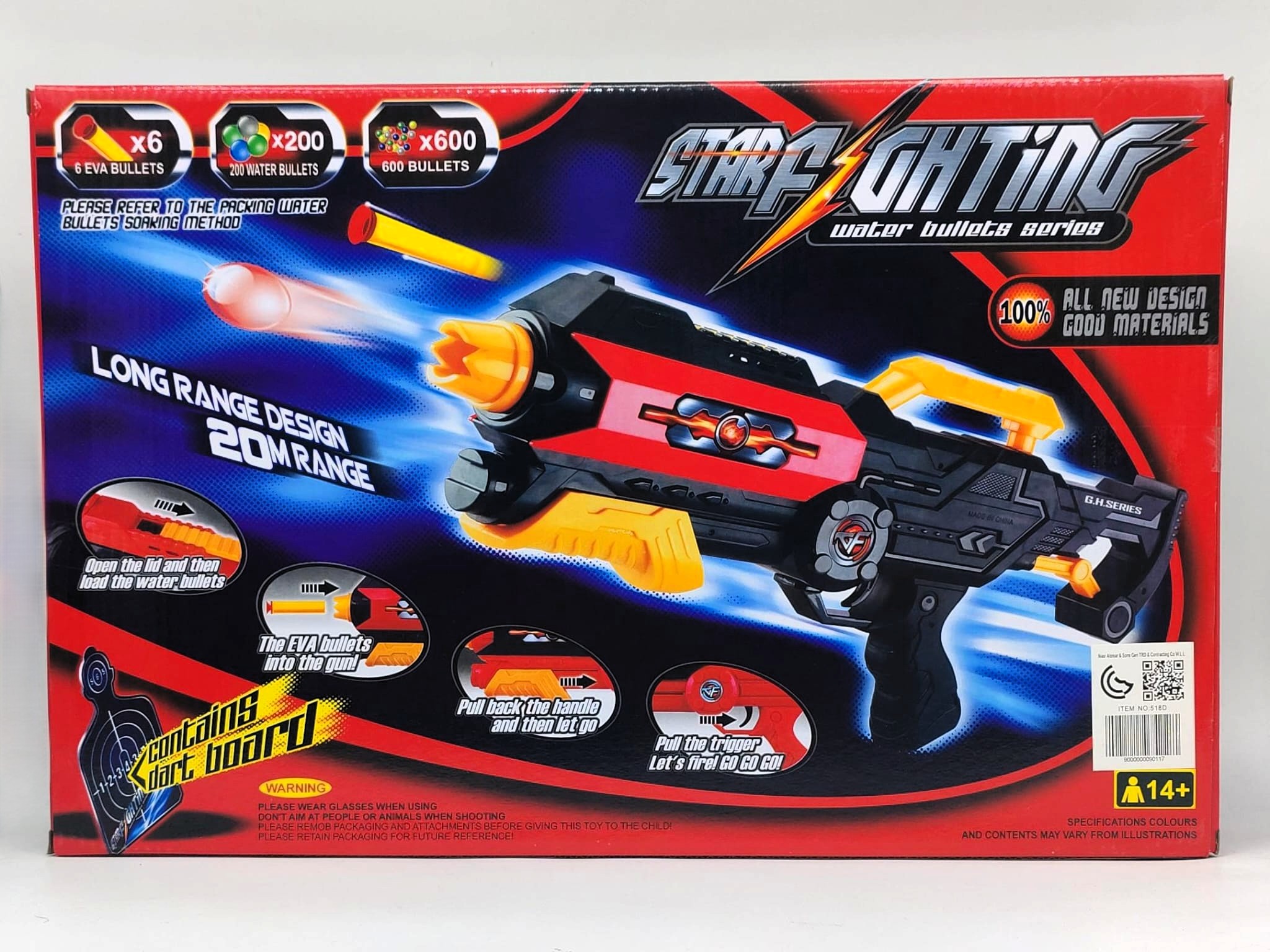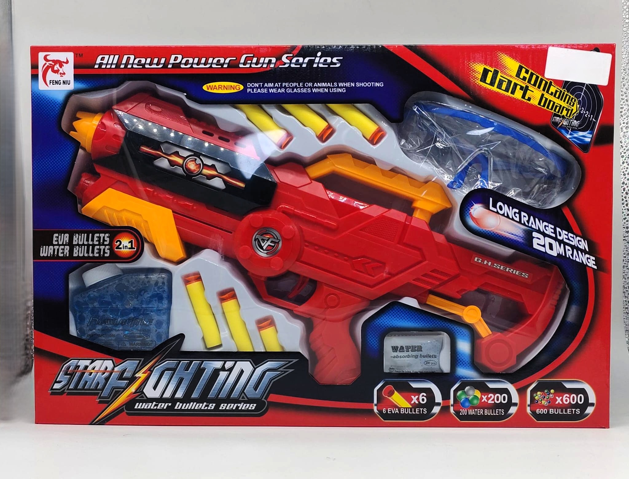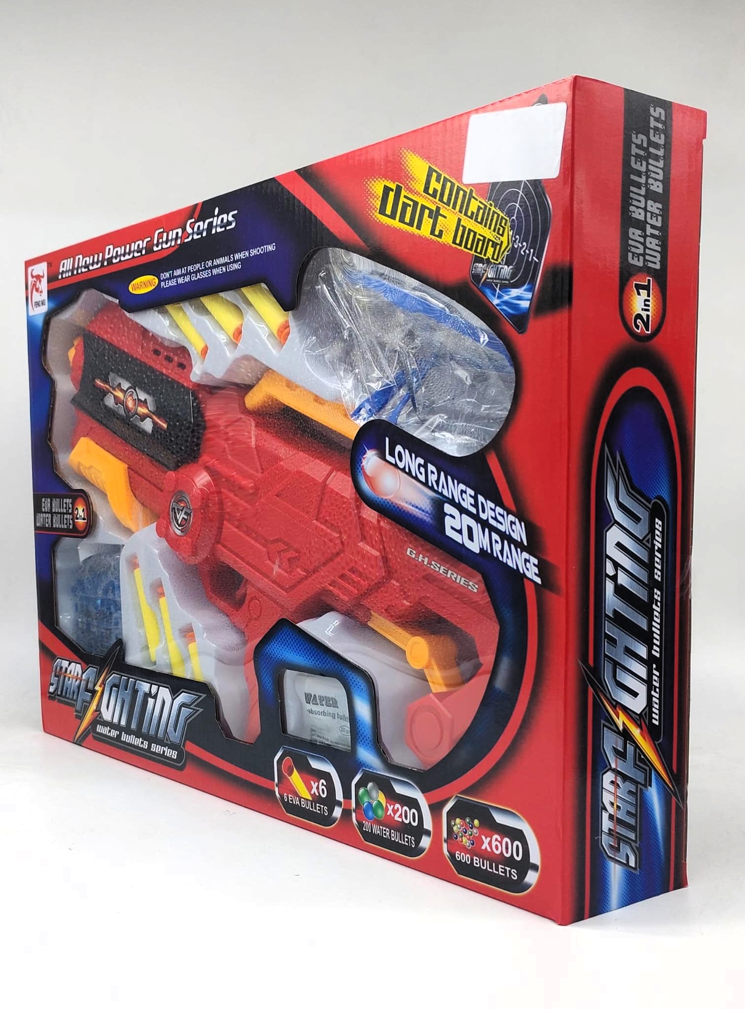 Gear up for the ultimate backyard battle with the “Star Fighting” 2-in-1 Power Gun Series Blaster! This dual-action toy blaster offers twice the fun, allowing you to easily switch between shooting soft foam darts and splat-tastic water gel bullets for action-packed outdoor games.