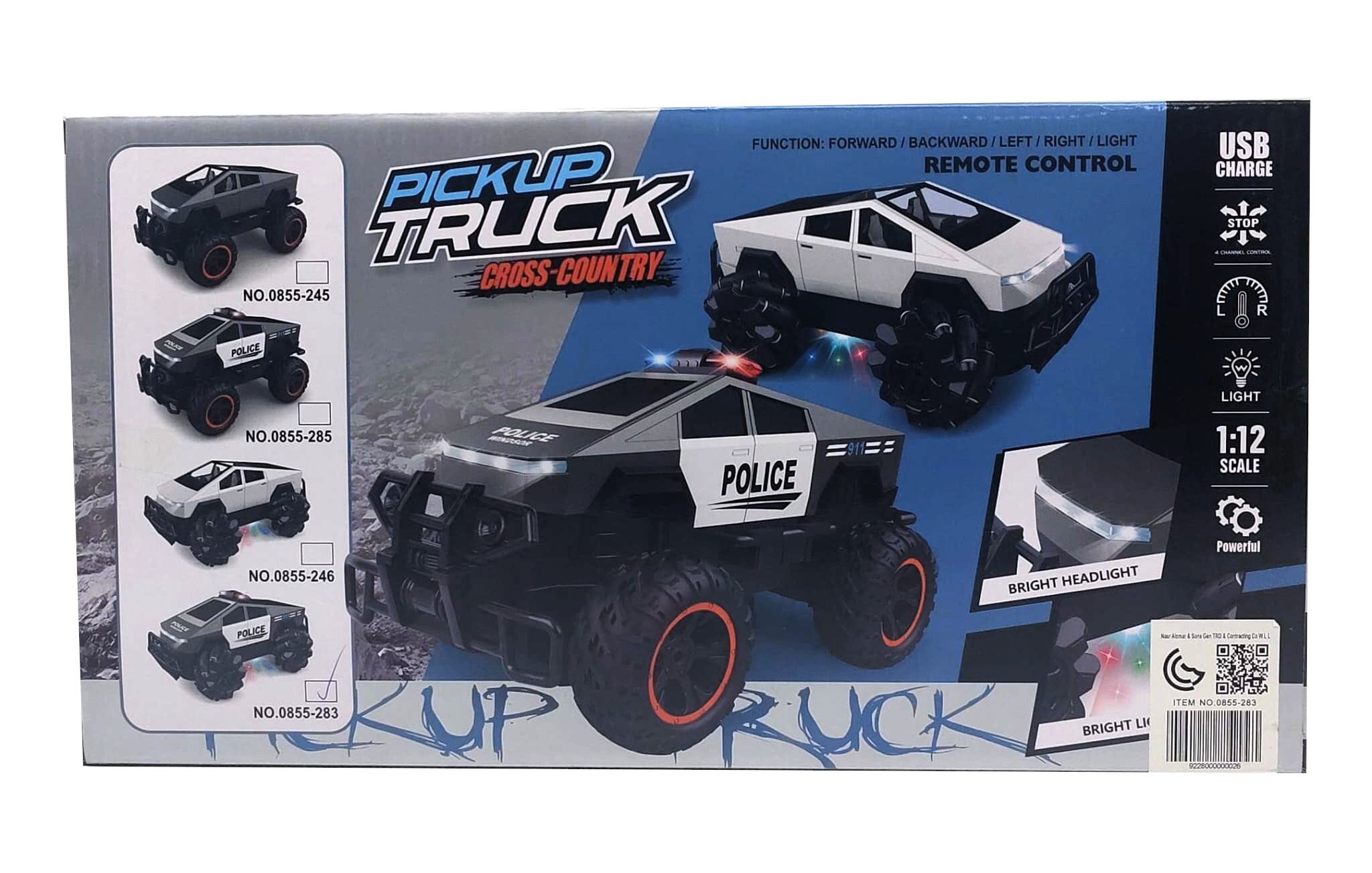 Patrol the rugged terrain of the future with the 1:12 Scale Futuristic R/C Police Truck! This “Cross-Country” remote control pickup combines cutting-edge, angular “cyber” styling with the classic, high-speed action of a law enforcement pursuit vehicle.