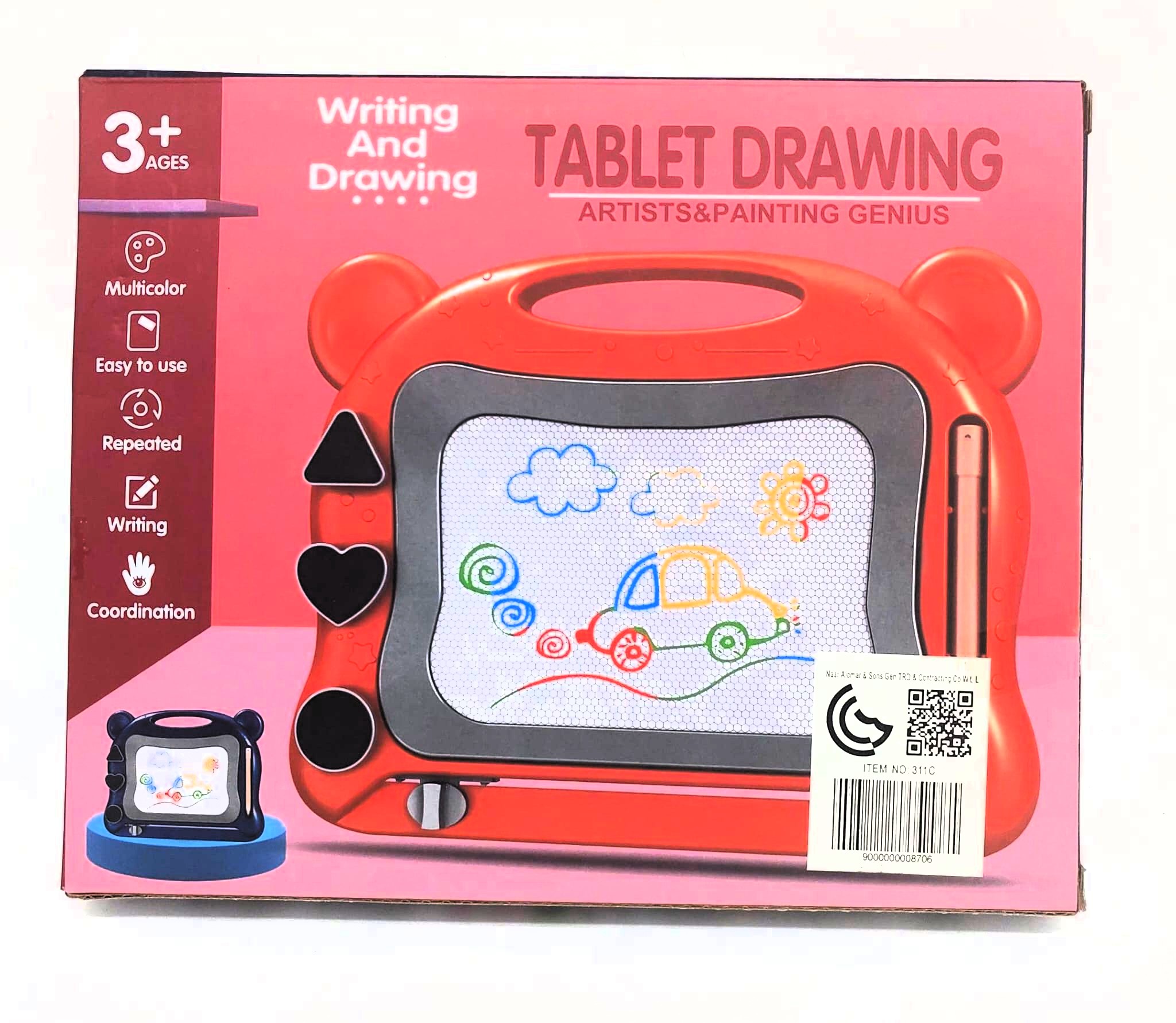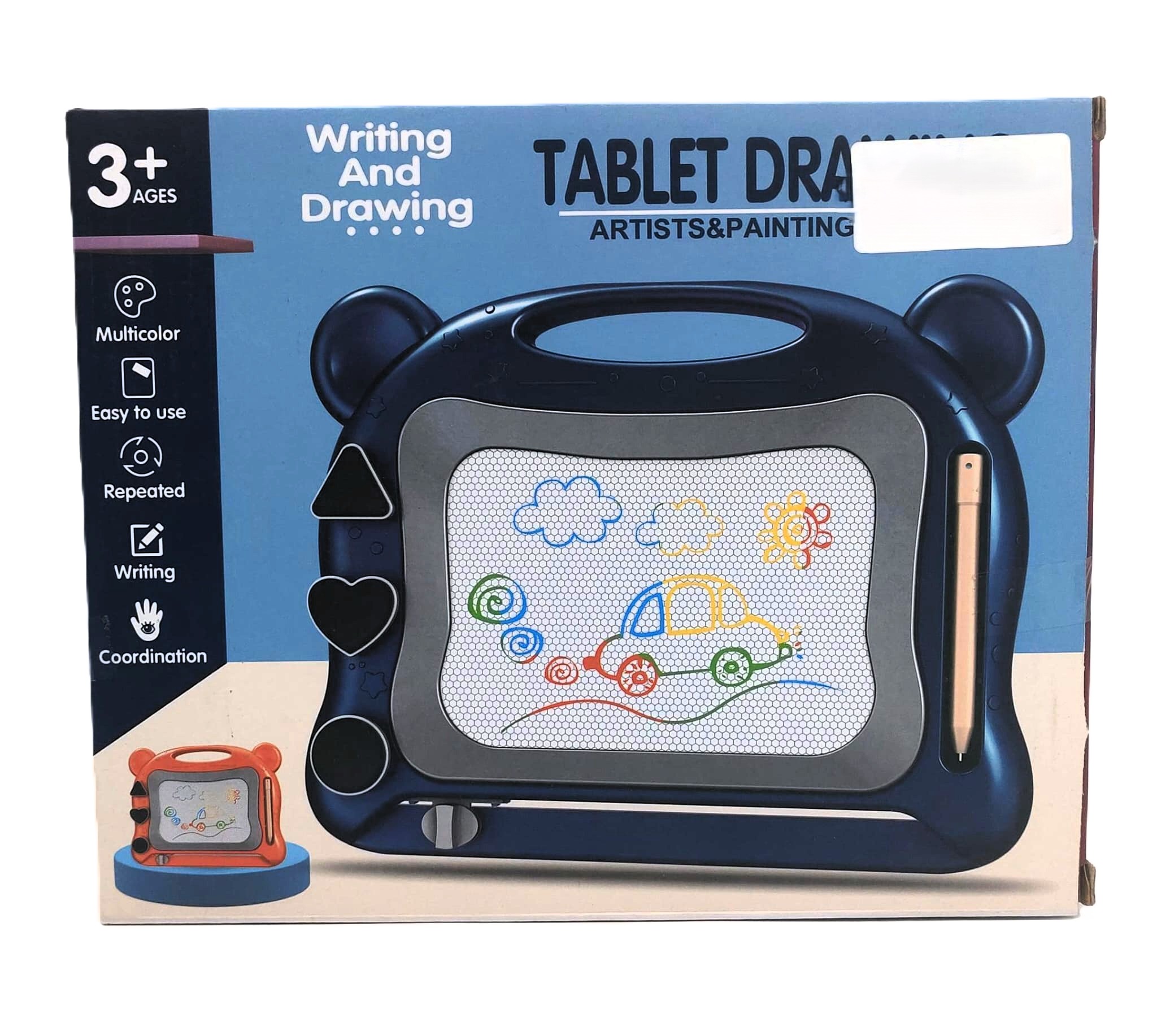 Multicolor Magic: Unlike standard gray drawing boards, this tablet features a special “Multicolor” magnetic screen! As kids draw, different vibrant colors are revealed beneath the surface, bringing their doodles and cars to life.