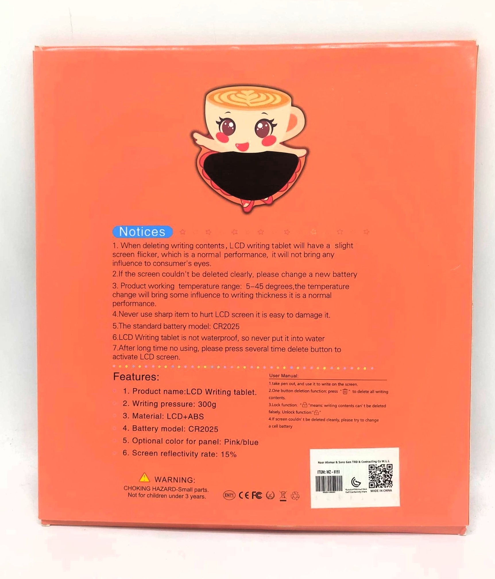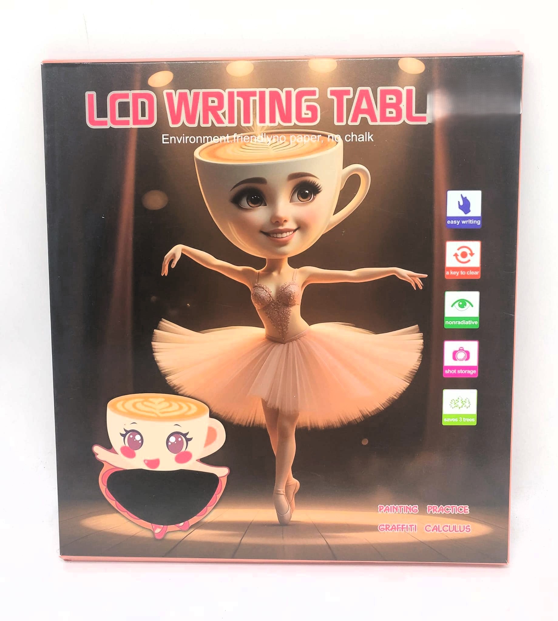 Let your child’s creativity take center stage with the “Ballerina Coffee Cup” LCD Writing Tablet! Featuring a whimsical character design of a cute latte art coffee cup dressed in a pink ballerina tutu, this electronic drawing pad is a fun, modern, and mess-free alternative to traditional paper, pens, and chalk.