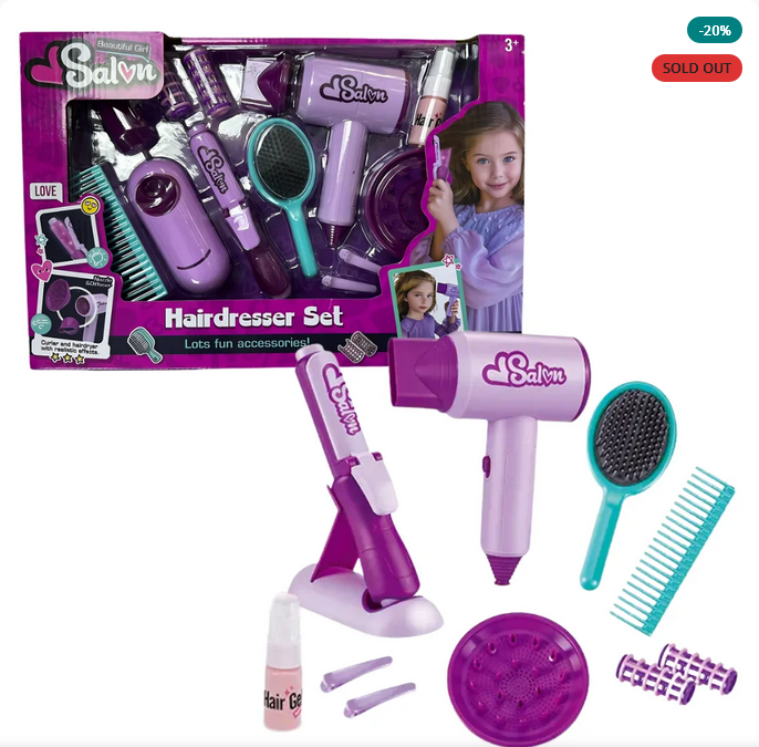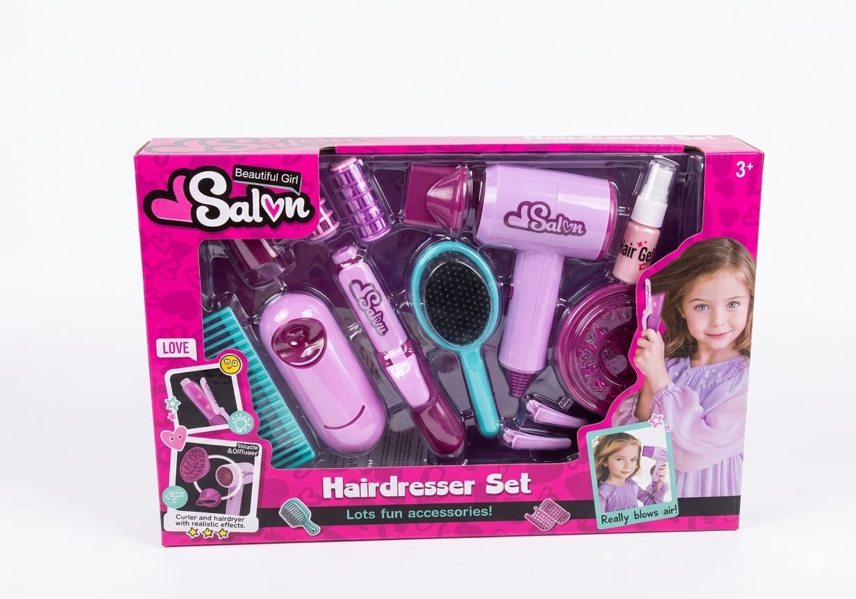 Spark your child’s imagination and creativity with the Beautiful Girl Salon: Hairdresser Set. This deluxe styling kit is designed to provide a realistic ‘salon’ experience at home. Perfect for kids who love fashion and beauty, this set includes professional-style tools that make pretend-play feel like the real thing!