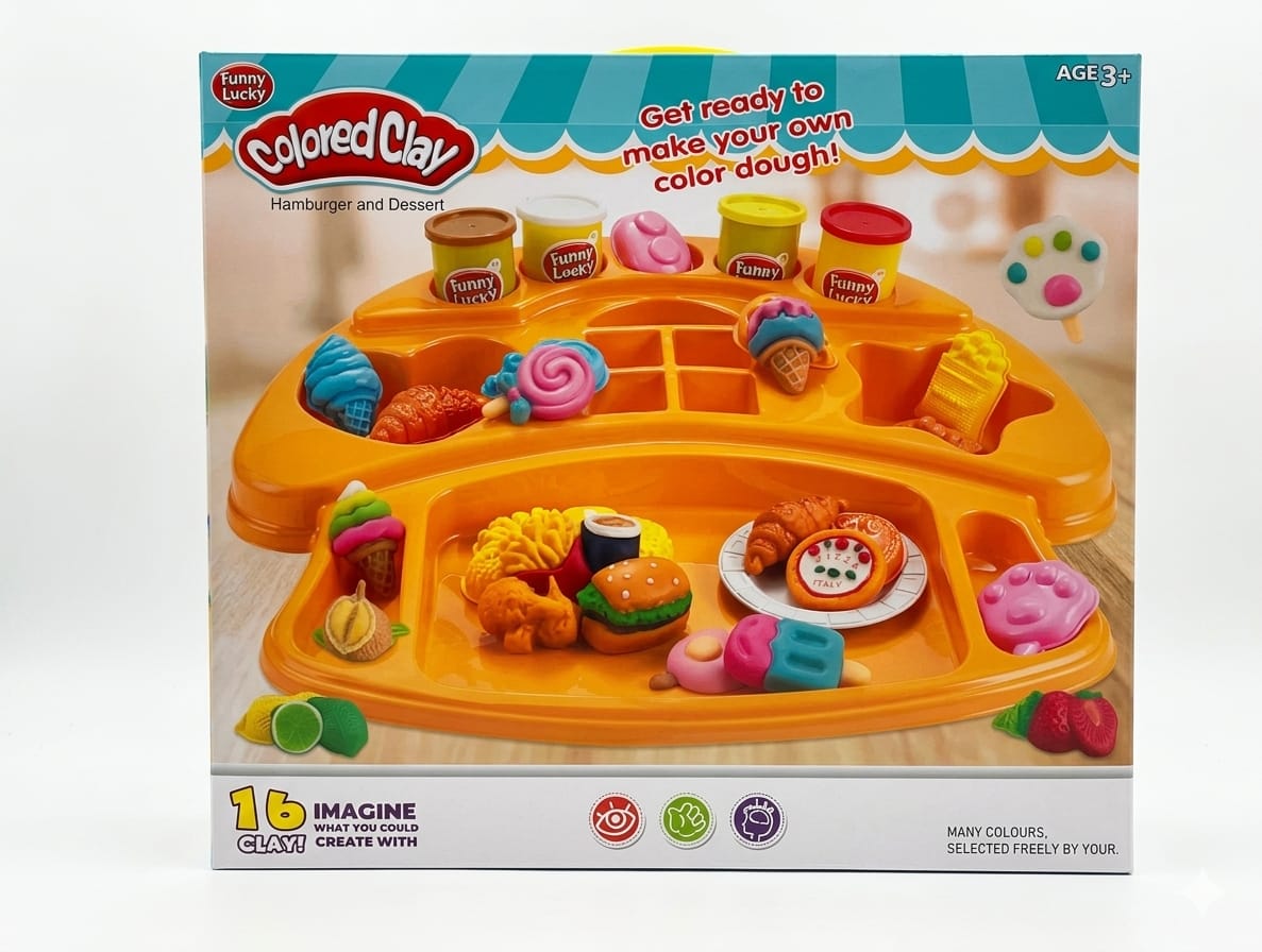 Serve up a massive feast of imagination with the Colored Clay Hamburger & Dessert Feast! Available at al3aby.com, this deluxe 16-piece modeling set is the ultimate playground for young chefs who want to master both savory and sweet creations. From classic burgers and crispy fries to intricate pastries and colorful lollipops, this set provides a comprehensive culinary experience in one box.