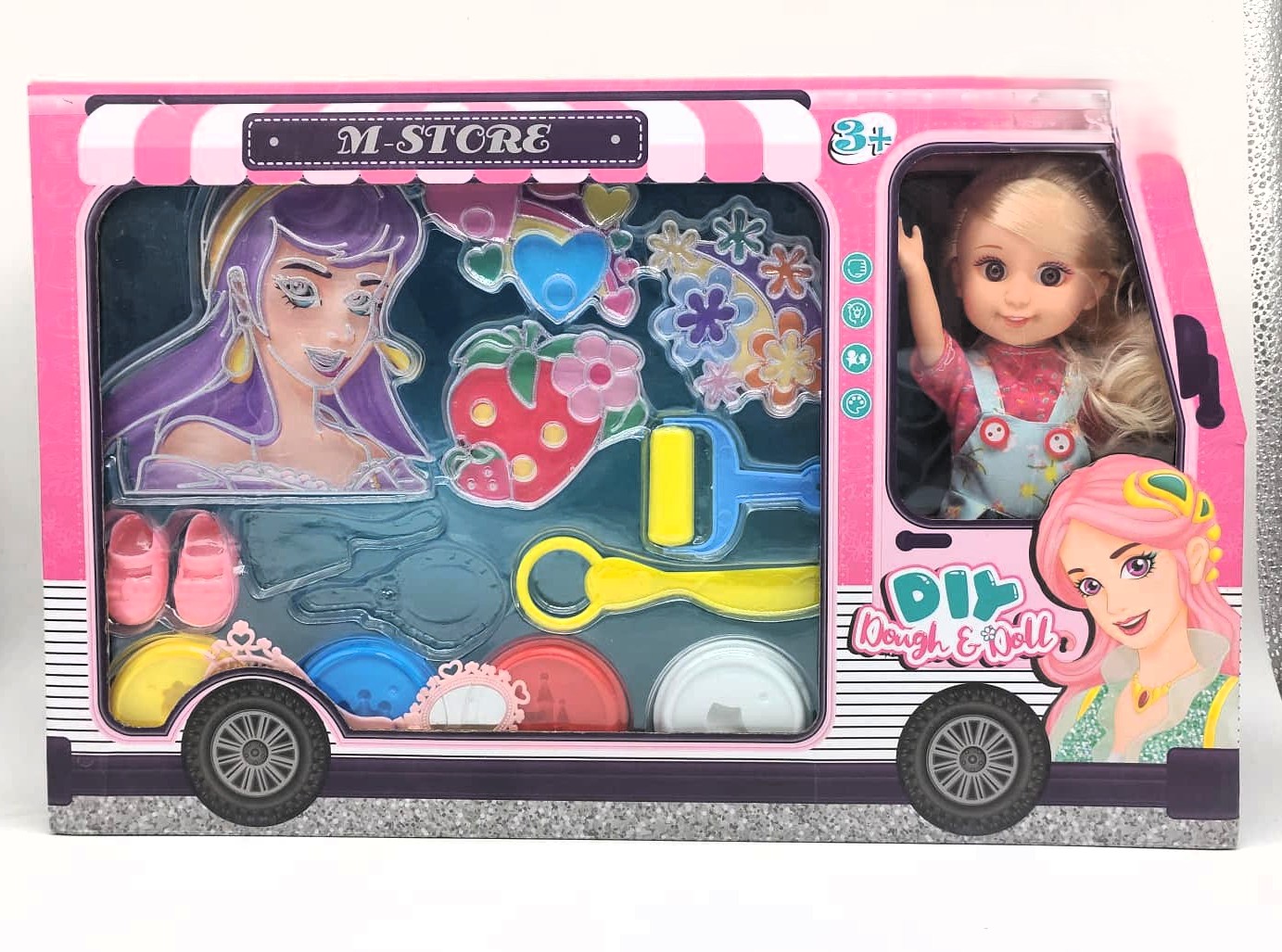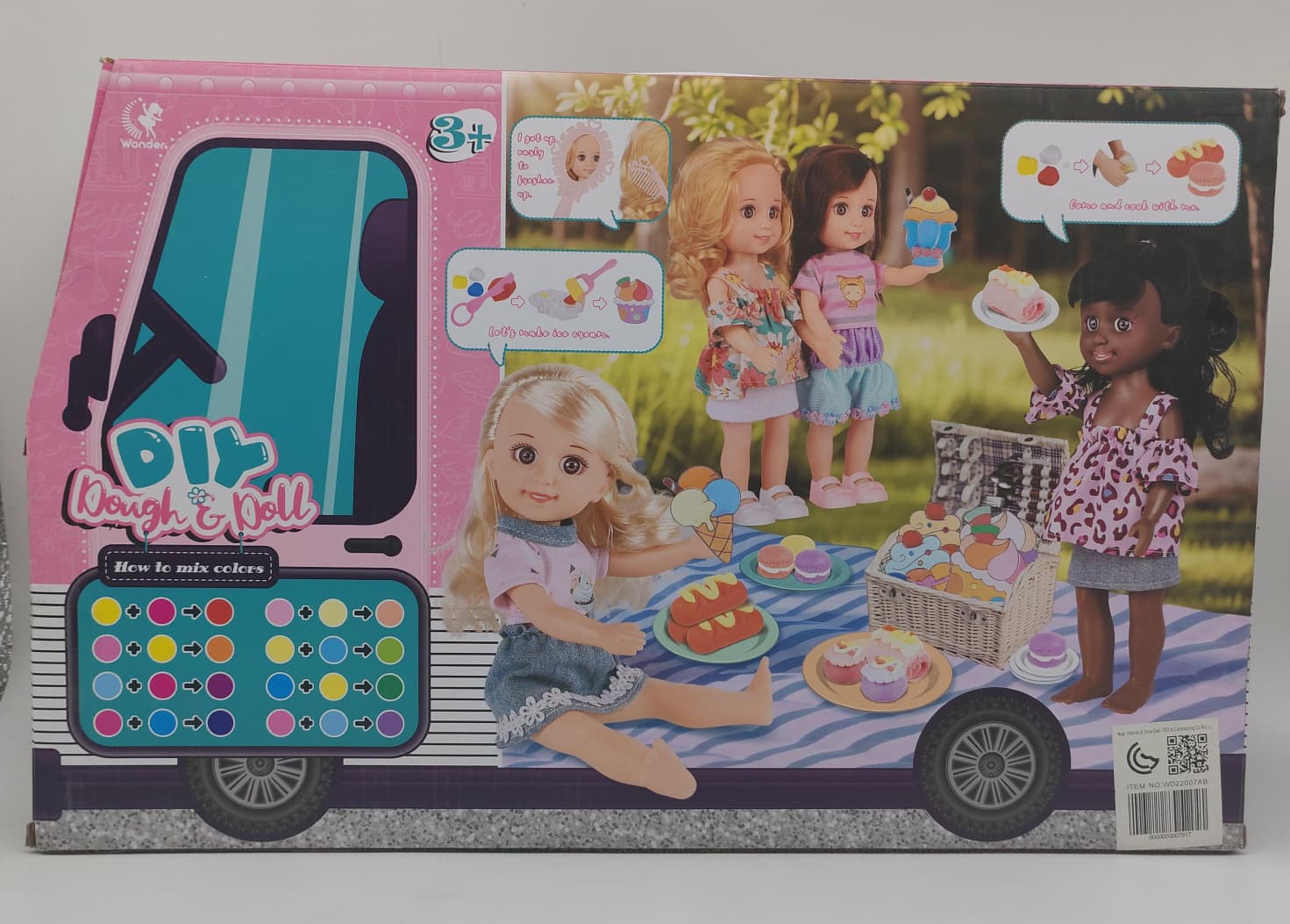 Take your creativity on the road with the DIY Dough & Doll Garden Picnic Van! This vibrant playset combines the magic of doll roleplay with the tactile fun of modeling dough. Featuring a beautiful blonde fashion doll in a floral outfit, this set is perfect for children who love storytelling and arts and crafts.