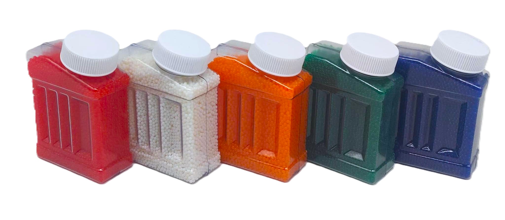 Eco-Safe Gel Pellets! Designed for use with compatible gel blasters, this kit lets you “grow your own ammo” simply by adding water. Packaged in convenient, reusable plastic shaker bottles, this set includes a vibrant assortment of colors: red, white, orange, green, and blue.