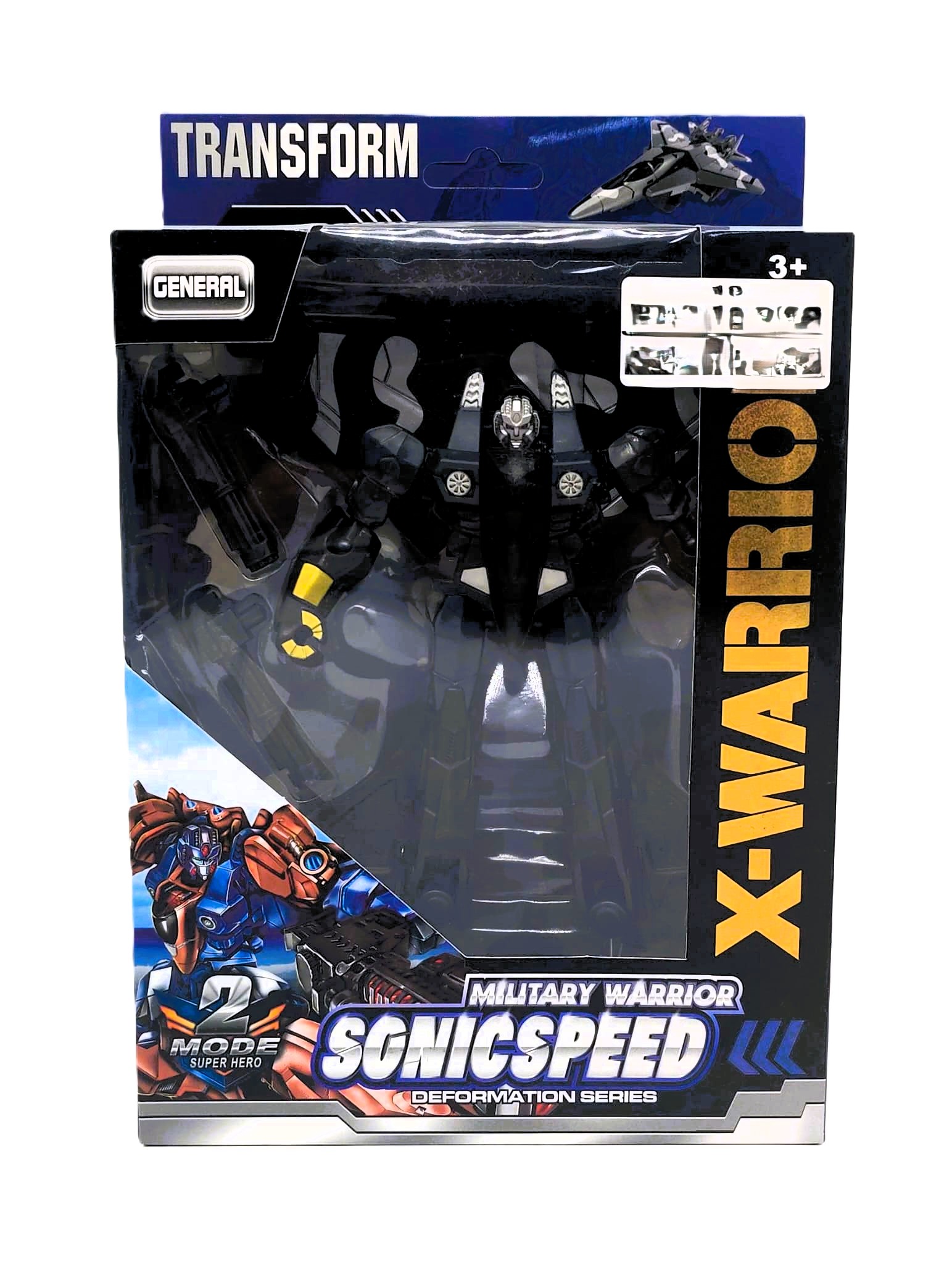 Take to the skies and command the battlefield with the General X-Warrior Sonicspeed Military Warrior! Part of the action-packed “Deformation Series,” this impressive action figure gives kids the ultimate “2 Mode Super Hero” experience, seamlessly shifting from a high-speed fighter jet into a formidable robotic defender.