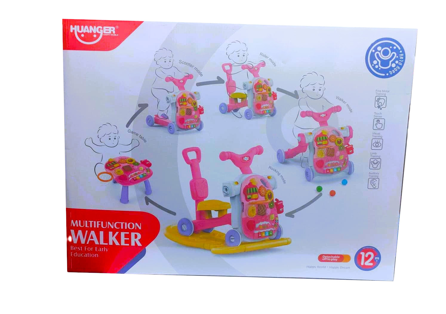 The Huanger 5-in-1 Multifunction Walker (Pink) is the perfect all-in-one toy for toddlers 12m+. Easily transforms into a walker, ride-on, scooter, rocking horse, and game table. Featuring music, lights, and motor-skill activities, it supports your child’s milestones at every stage. Shop this pink 5-in-1 baby essential at al3aby.com today!
