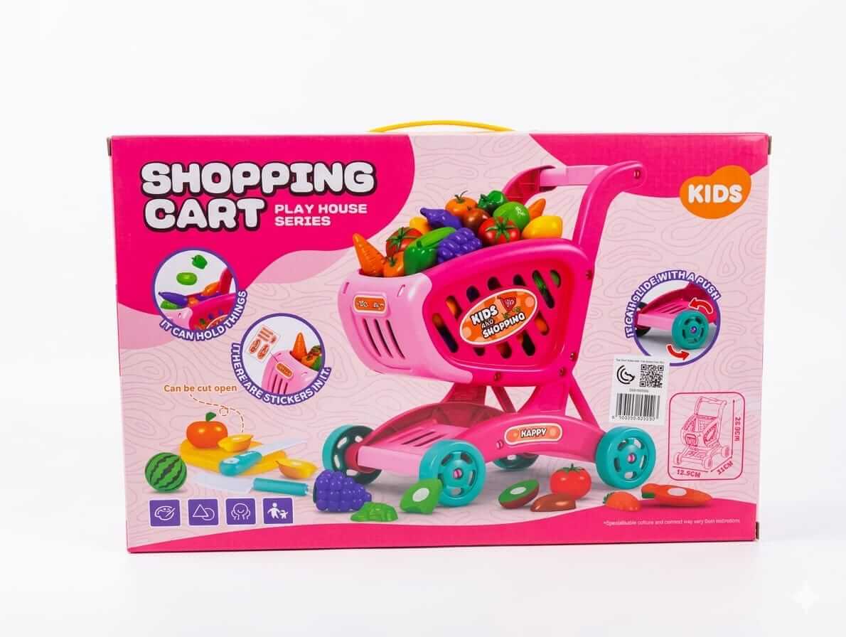 Complete Set: Includes a shopping cart, play knife, cutting board, and a variety of sliceable fruits and vegetables.