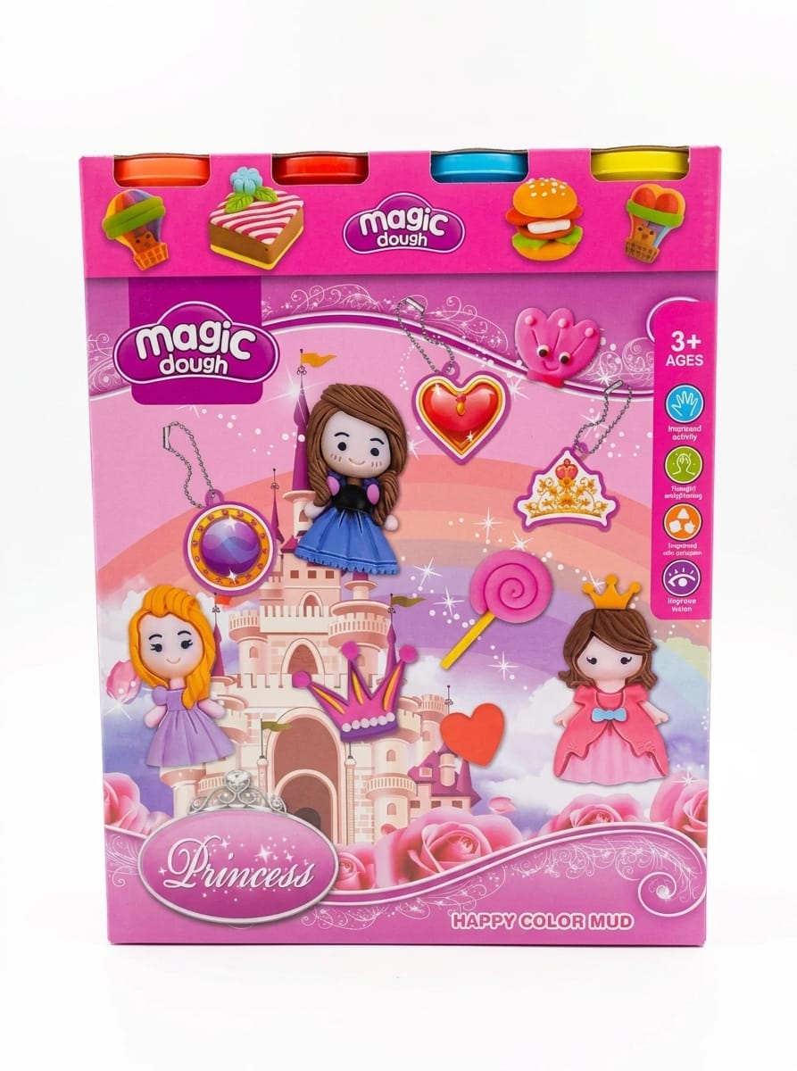 Step into a fairytale world with the Magic Dough Princess Castle Set. This enchanting creative kit from al3aby.com is designed for every child who dreams of royalty. Using soft, vibrant “Happy Color Mud,” little artists can sculpt their own princess dolls, craft sparkling royal jewelry, and design majestic crowns fit for a queen.