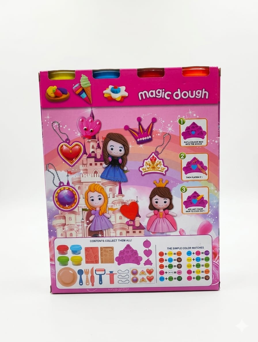 STEM & Color Theory: Following the Magic Dough tradition, the back of the box features a “Simple Color Matches” guide. Children learn to combine primary colors to create royal purple, soft pink, and emerald green.