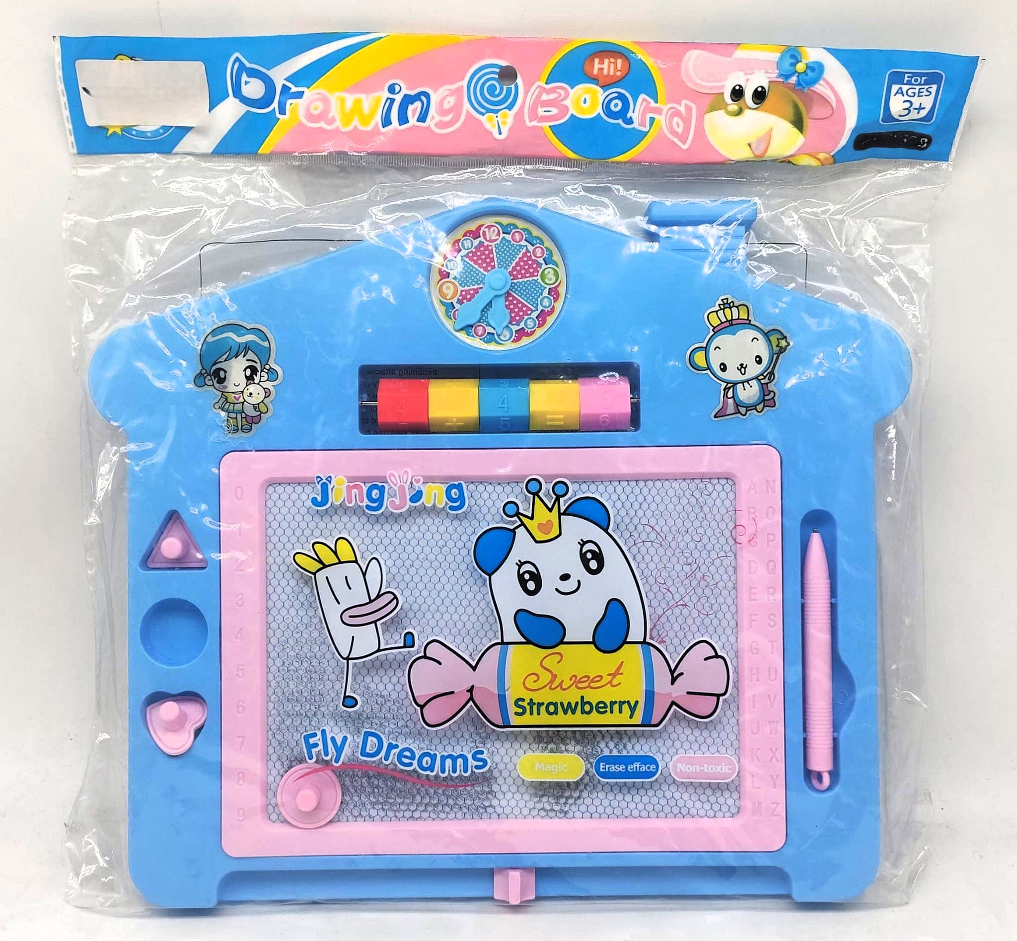 Available in vibrant Pink and Blue, this non-toxic “Magic” drawing board is the ultimate travel-friendly toy to keep little ones engaged and learning, whether at home or on the go!