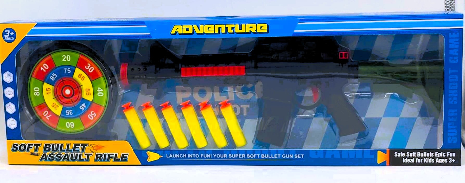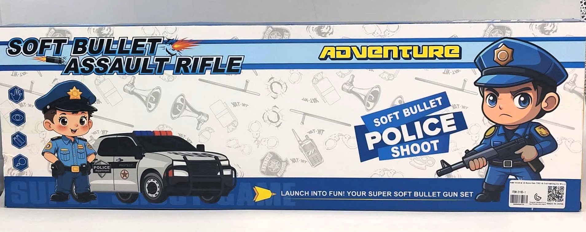 Gear up for epic backyard missions with the “Police Shoot” Large Soft Bullet Assault Rifle! This impressive, realistically styled adventure set provides all the thrill of target practice in a safe, kid-friendly design, making it the ultimate addition to your little officer’s playroom armory.