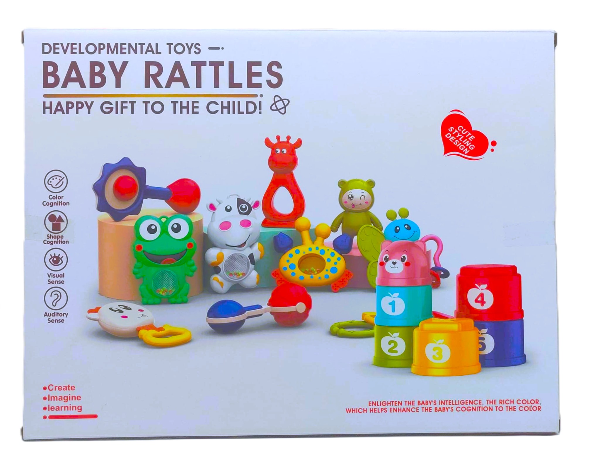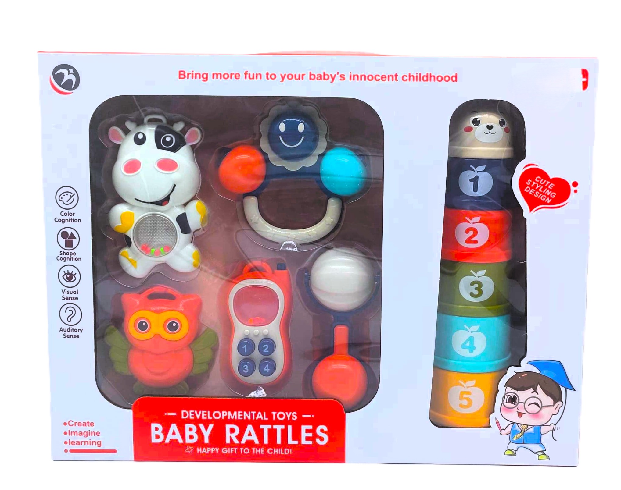 Bring more fun to your baby’s innocent childhood with this comprehensive Developmental Baby Rattle and Stacking Set. This “Happy Gift to the Child” is meticulously designed to support early milestones through sensory play and discovery. Combining a variety of textured animal rattles with a set of educational stacking cups, it offers a complete “create, imagine, learning” experience for your little one.